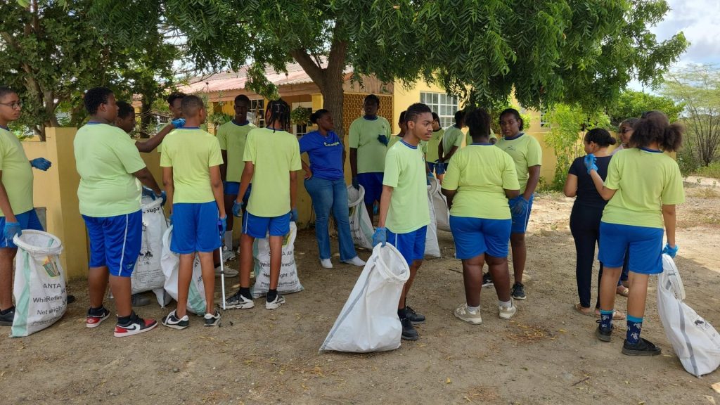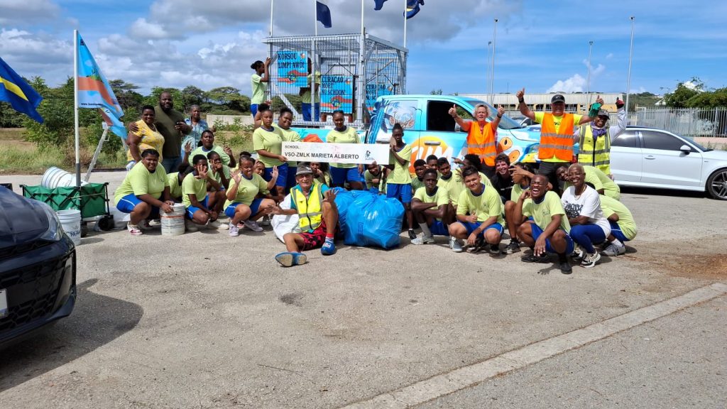 Vandaag (18 november) hebben 40 leerlingen van VSO – ZMLK MARIETA ALBERTO SCHOOL tesaam met het Kunuku Man Team de buurt rondom hun school schoon gemaakt. Het was een goede en geslaagde schoonmaak actie met als resultaat ⬇️⬇️